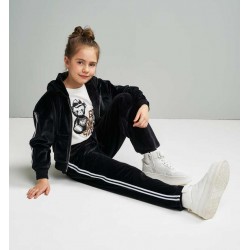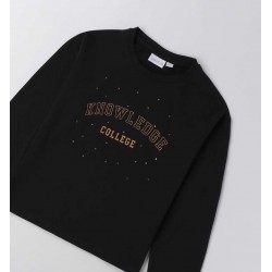Stretch cotton denim skirt, model with pleats and chain application, zip opening and adjustable buttonhole elastic waistband
